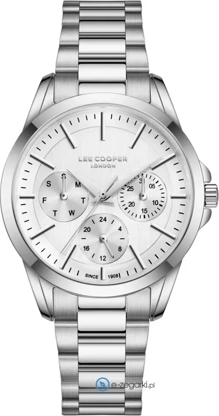 Damski zegarek Lee Cooper LC08141.330 to zegarek, który dzięki swemu wzornictwu zawsze będzie prezentował się dobrze. Tarcza zegarka jest w kolorze srebrnym. Zegarek ten pokazuje aktualny czas w formacie analogowym dzięki temu odczyt jest intuicyjny. Koperta w barwach koloru srebrnego szeroka jest na 34 mm - wyróżnia się okrągłym kształtem.