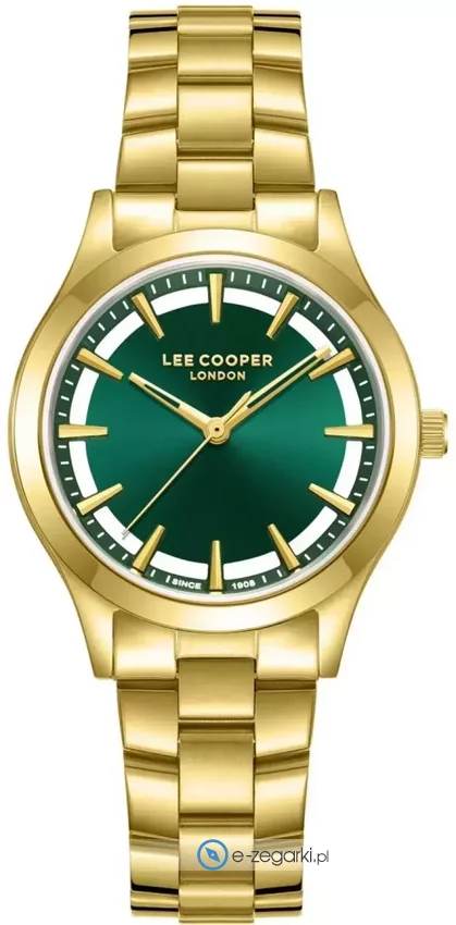 Zegarek damski LC08147.170 marki Lee Cooper to stylowe połączenie funkcjonalności i ciekawego designu. Niebanalną stylistykę zegarka uzyskano dzięki tarczy w kolorze zielonym. Zaprezentowana metodą analogową bieżąca godzina jest czytelna i prosta do odczytania. Koperta jest pokryta kolorem złotym szeroka jest na 33 mm - w kształcie okrągłym.