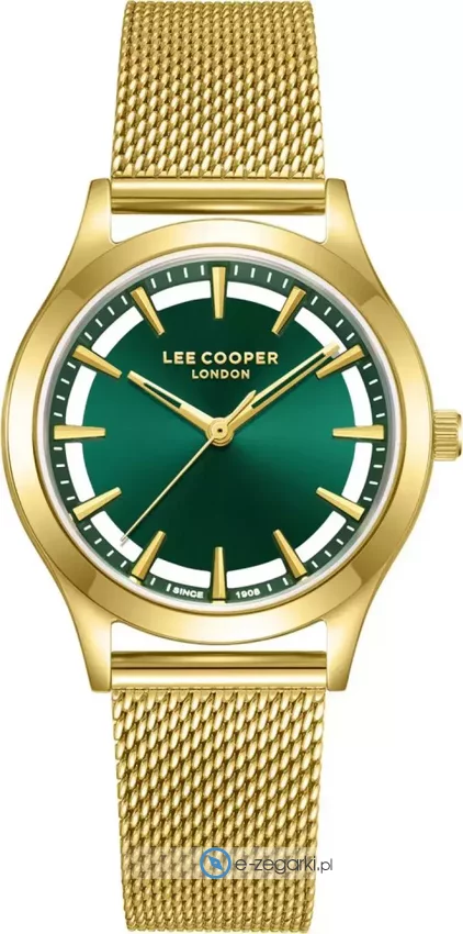 Zegarek damski LC08156.170 marki Lee Cooper to idealne połączenie funkcjonalności a także ciekawego designu. Wysokiej trwałości cyferblat zegarka ozdobiono zielonym kolorem. Zaprezentowana metodą analogową bieżąca godzina jest czytelna i szybka do sprawdzenia. Koperta w barwach koloru złotego szeroka jest na 33 mm - posiada okrągły kształt.