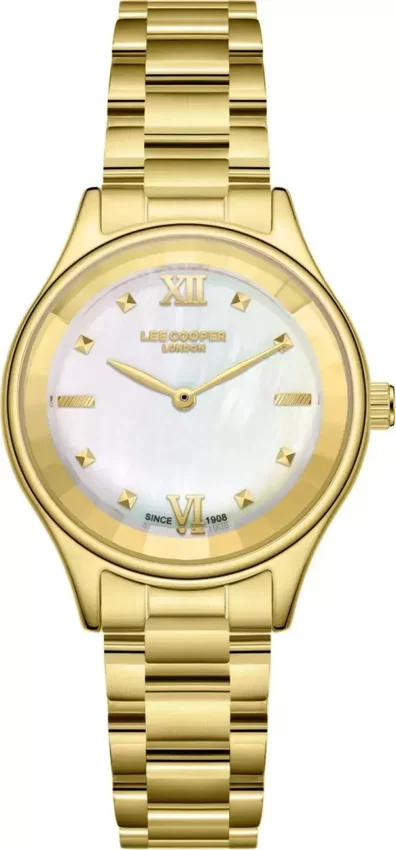 Zegarek damski LC08157.120 marki Lee Cooper to stylowe połączenie funkcjonalności a także modnego designu. Wysokiej trwałości tarczę zegarka ozdobiono perłowym kolorem. Zegarek ten pokazuje aktualny czas w formacie analogowym dzięki czemu odczyt jest bardzo łatwy. Koperta w barwach koloru złotego szeroka jest na 31 mm - w kształcie okrągłym.