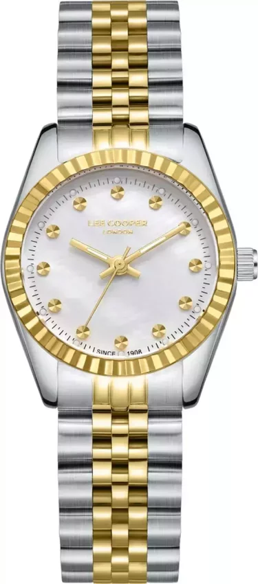 Zegarek damski LC08167.220 marki Lee Cooper to stylowe połączenie funkcjonalności oraz ciekawego wzornictwa. Cyferblat zegarka jest w kolorze perłowym. Zegarek ten pokazuje godzinę w formacie analogowym dzięki temu odczyt jest bezproblemowy. Koperta jest w kolorze srebrno złotym szeroka jest na 28 mm - w kształcie okrągłym.