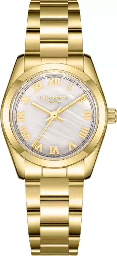 Damski zegarek Lee Cooper LC08190.120 to zegarek, który dzięki swemu wzornictwu zawsze będzie prezentował się dobrze. Wysokiej jakości tarczę zegarka pokryto perłowym kolorem. Aktualna godzina prezentowana jest w sposób analogowy co intuicyjnie pozwala ją odczytać. Koperta została pokryta kolorem złotym szeroka jest na 28 mm - w kształcie okrągłym.