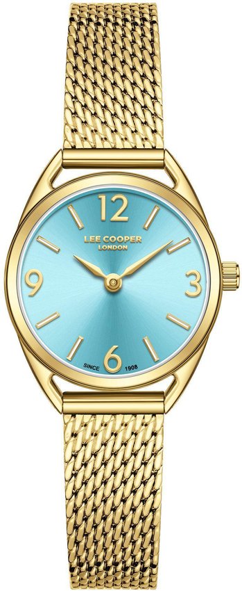 Model LC08207.100 marki Lee Cooper to gustowny zegarek naręczny damski, który jest wyposażony w pomysłowe rozwiązania oraz funkcje. Charakterystyczną stylistykę zegarka osiągnięto dzięki tarczy w kolorze niebieskim. Pokazana metodą analogową bieżąca godzina jest czytelna i szybka do odczytania. Koperta w barwach koloru złotego szeroka jest na 26 mm - cechuje się okrągłym kształtem.