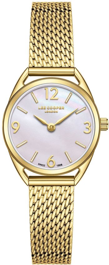 Model LC08207.120 marki Lee Cooper to gustowny zegarek naręczny damski, który jest wyposażony w pomysłowe rozwiązania i funkcje. Charakter zapewnia wysokiej jakości tarcza w kolorze perłowym. Zegarek ten pokazuje godzinę w formacie analogowym dzięki temu odczyt jest intuicyjny. Koperta jest w kolorze złotym szeroka jest na 26 mm - cechuje się okrągłym kształtem.