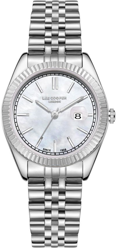 Zegarek damski LC08210.320 marki Lee Cooper to dobre połączenie funkcjonalności a także ciekawego designu. Cyferblat zegarka jest w kolorze perłowym. Aktualna godzina pokazywana jest w sposób analogowy co bez trudu pozwala ją odczytać. Koperta w barwach koloru srebrnego szeroka jest na 32 mm - ma okrągły kształt.
