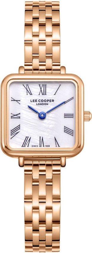 Model LC08226.420 marki Lee Cooper to stylowy zegarek naręczny damski, który posiada pomysłowe rozwiązania i funkcje. Niebanalną konstrukcję czasomierza uzyskano z pomocą tarczy w kolorze perłowym. Godzina prezentowana jest w sposób analogowy co bez trudu pozwala ją odczytać. Koperta jest w kolorze różowo złotym.
