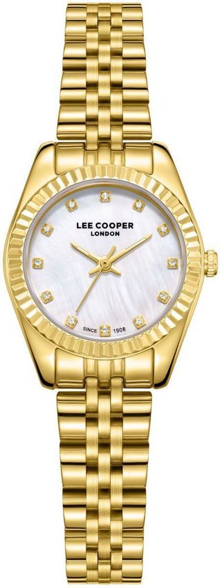 Zegarek damski LC08243.120 marki Lee Cooper to stylowe połączenie funkcjonalności oraz ciekawego wzornictwa. Cyferblat zegarka jest w kolorze perłowym. Pokazana metodą analogową aktualna godzina jest czytelna i szybka do sprawdzenia. Koperta jest w kolorze złotym szeroka jest na 25 mm - w kształcie okrągłym.