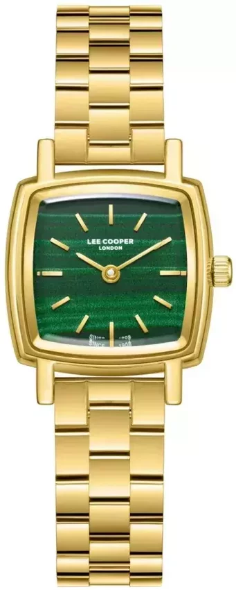 Damski zegarek Lee Cooper LC08283.170 to zegarek, który dzięki swemu wzornictwu zawsze będzie prezentował się dobrze. Stylu nadaje wysokiej jakości tarcza w kolorze zielonym. Zegarek ten pokazuje godzinę w formacie analogowym dzięki temu odczyt jest bardzo łatwy. Koperta została pokryta kolorem złotym szeroka jest na 23 mm - w kształcie prostokątnym.