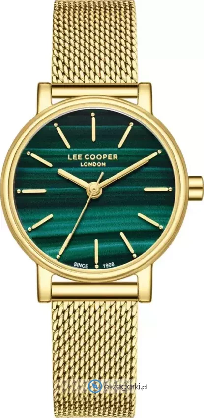 Zegarek damski LC08292.170 marki Lee Cooper to dobre połączenie funkcjonalności i modnego designu. Charakter zapewnia wysokiej klasy cyferblat w kolorze zielonym. Zegarek ten prezentuje godzinę w formacie analogowym dzięki czemu odczyt jest bardzo łatwy. Koperta została ozdobiona kolorem złotym szeroka jest na 26 mm - w kształcie okrągłym.
