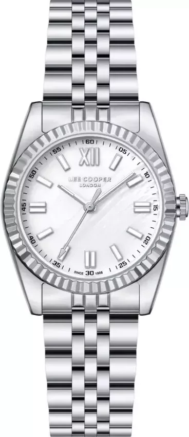 Damski zegarek Lee Cooper LC08303.320 to zegarek, który dzięki swemu wzornictwu zawsze będzie prezentował się dobrze. Wysokiej trwałości cyferblat zegarka ozdobiono białym kolorem. Aktualna godzina przedstawiona jest w sposób analogowy co bez trudu pozwala ją odczytać. Koperta jest ozdobiona kolorem srebrnym szeroka jest na 30 mm - cechuje się okrągłym kształtem.