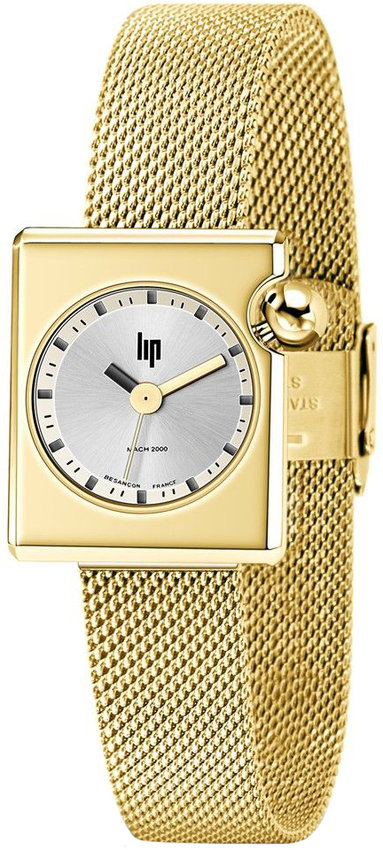 Model 671177 marki Lip to gustowny zegarek naręczny damski, który posiada pomysłowe rozwiązania i funkcje. Cyferblat zegarka jest w kolorze srebrnym. Godzina pokazywana jest w sposób analogowy co intuicyjnie pozwala ją odczytać. Koperta jest w kolorze złotym szeroka jest na 28 mm oraz ma grubość 7 mm.