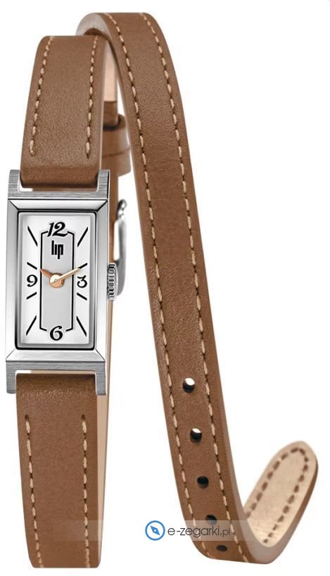 Damski zegarek Lip 671207 to zegarek, który dzięki swemu wzornictwu zawsze będzie prezentował się dobrze. Charakteru nadaje wysokiej jakości tarcza w kolorze srebrnym. Pokazana metodą analogową aktualna godzina jest czytelna i szybka do odczytania. Koperta w odcieniach koloru srebrnego szeroka jest na 13 mm - w kształcie prostokątnym.