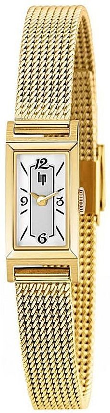Damski zegarek Lip 671226 to zegarek, który dzięki swemu wzornictwu zawsze będzie prezentował się dobrze. Wysokiej jakości cyferblat zegarka pokryto srebrnym kolorem. Zegarek ten prezentuje godzinę w formacie analogowym dzięki temu odczyt jest intuicyjny. Koperta jest w kolorze złotym szeroka jest na 13 mm - wyróżnia się prostokątnym kształtem.