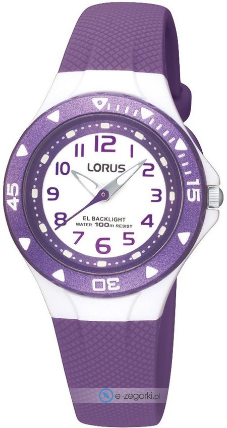 Zegarek R2337DX9 posiada kwarcowy mechanizm zasilany normalną baterią. Pasek fioletowego koloru zrobiony jest z wysokiej jakości tworzywa sztucznego.
