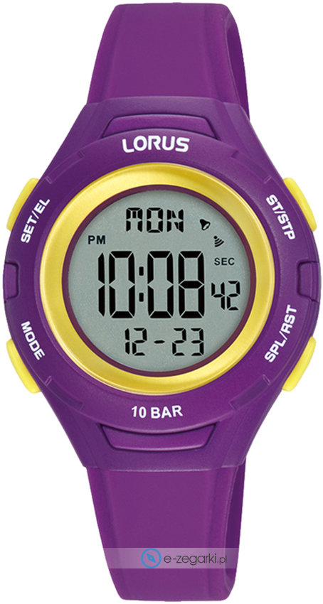 Model R2397PX9 marki Lorus to stylowy zegarek naręczny damski, który wyposażono w pomysłowe rozwiązania oraz funkcje. Godzina prezentowana jest w sposób cyfrowy co intuicyjnie pozwala ją odczytać. Koperta w odcieniach koloru fioletowego szeroka jest na 32 mm oraz ma grubość 13 mm - ma okrągły kształt.