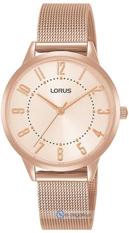Zegarek damski RG212UX9 marki Lorus to idealna pozycja dla osób ceniących sobie dbałość o szczegóły jak również sprawne działanie mechanizmów. Atrakcyjną budowę zegarka osiągnięto z pomocą tarczy w kolorze różowo złotym. Pokazana metodą analogową bieżąca godzina jest czytelna i prosta do sprawdzenia. Koperta w odcieniach koloru różowo złotego szeroka jest na 32 mm oraz ma grubość 7 mm - posiada okrągły kształt.