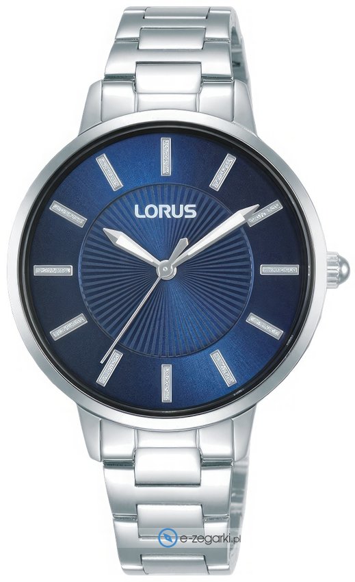 Model RG213VX9 marki Lorus to elegancki zegarek naręczny damski, który posiada ciekawe rozwiązania i funkcje. Cyferblat zegarka jest w kolorze niebieskim. Zegarek ten prezentuje aktualny czas w formacie analogowym dzięki czemu odczyt jest bezproblemowy. Koperta w odcieniach koloru srebrnego szeroka jest na 34 mm - cechuje się okrągłym kształtem.