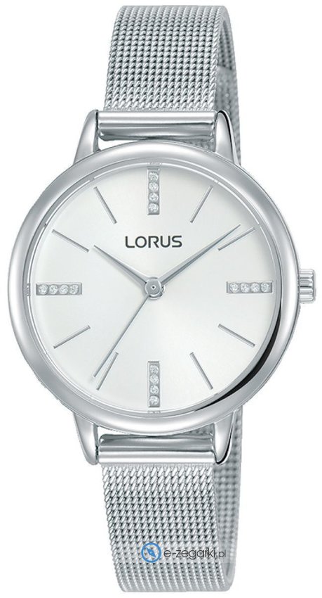 Zegarek damski RG215QX9 marki Lorus to stylowe połączenie funkcjonalności a także modnego wzornictwa. Styl zapewnia wysokiej klasy cyferblat w kolorze srebrnym. Zegarek ten prezentuje godzinę w formacie analogowym dzięki czemu odczyt jest bezproblemowy. Koperta jest w kolorze srebrnym szeroka jest na 30 mm oraz ma grubość 8 mm - cechuje się okrągłym kształtem.