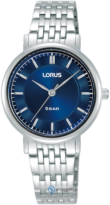 Zegarek damski RG215XX9 marki Lorus to stylowe połączenie funkcjonalności oraz ciekawego designu. Charakterystyczny wygląd czasomierza uzyskano także dzięki tarczy w kolorze niebieskim. Aktualna godzina przedstawiona jest w sposób analogowy co intuicyjnie pozwala ją odczytać. Koperta jest w kolorze srebrnym szeroka jest na 30 mm oraz ma grubość 8 mm - w kształcie okrągłym.