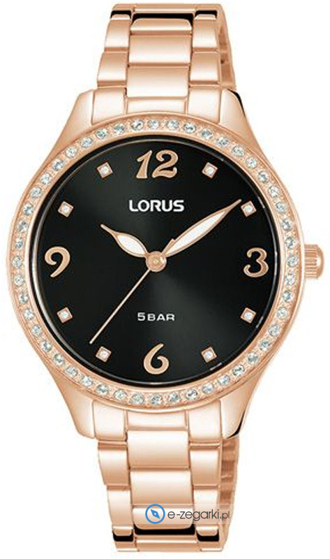 Zegarek damski RG232TX9 marki Lorus to dobre połączenie funkcjonalności oraz modnego wzornictwa. Tarcza zegarka jest w kolorze czarnym. Pokazana metodą analogową bieżąca godzina jest czytelna i łatwa do odczytania. Koperta została ozdobiona kolorem różowo złotym szeroka jest na 33 mm oraz ma grubość 8 mm - w kształcie okrągłym.