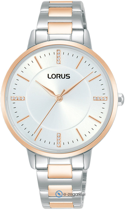 Zegarek damski RG252WX9 marki Lorus to stylowe połączenie funkcjonalności i ciekawego wzornictwa. Niebanalną budowę czasomierza osiągnięto z pomocą tarczy w kolorze srebrnym. Godzina przedstawiona jest w sposób analogowy co intuicyjnie pozwala ją odczytać. Koperta została pokryta kolorem różowo złotym szeroka jest na 34 mm oraz ma grubość 8 mm - posiada okrągły kształt.
