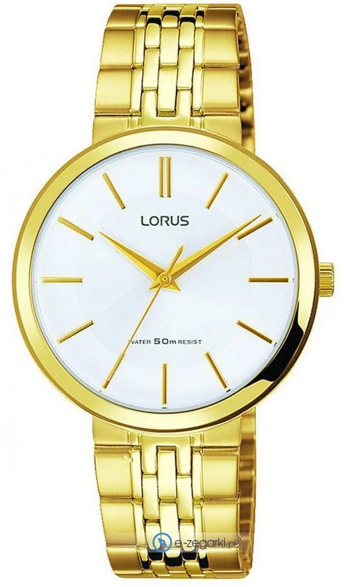 Model RG276MX9 marki Lorus to elegancki zegarek naręczny damski, który wyposażono w ciekawe rozwiązania i funkcje. Cyferblat zegarka w kolorze białym. Koperta jest w kolorze złotym szeroka jest na 32 mm oraz ma grubość 7.80 mm - w kształcie okrągłym.