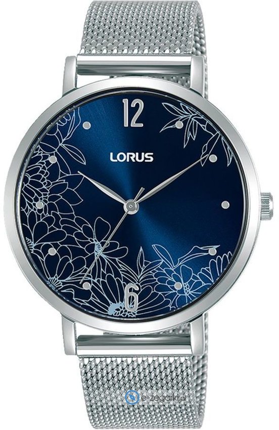 Model RG293TX9 marki Lorus to gustowny zegarek naręczny damski, który wyposażono w pomysłowe rozwiązania i funkcje. Stylu dodaje wysokiej jakości cyferblat w kolorze niebieskim. Zegarek ten prezentuje godzinę w formacie analogowym dzięki temu odczyt jest bezproblemowy. Koperta w barwach koloru srebrnego szeroka jest na 36 mm oraz ma grubość 8 mm - cechuje się okrągłym kształtem.