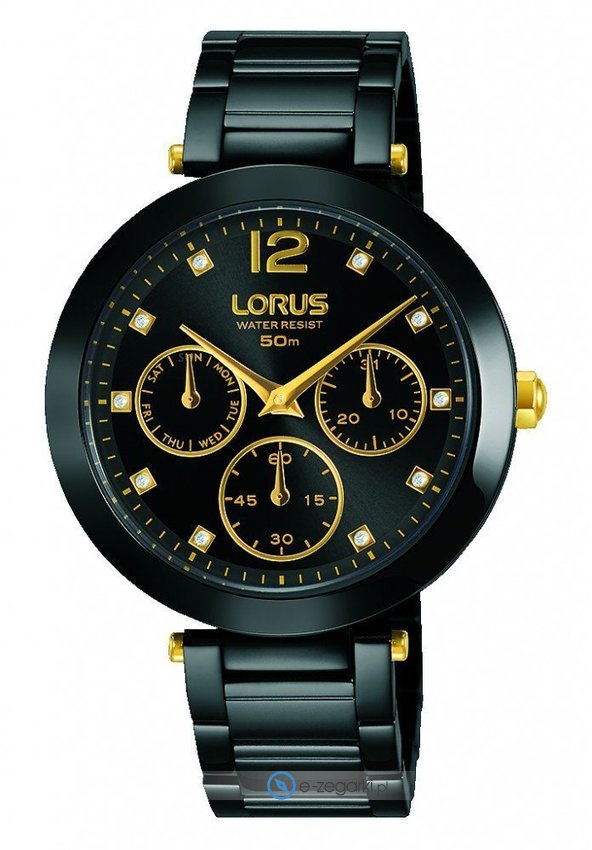 Zegarek damski RP601DX9 marki Lorus to ciekawa propozycja dla osób ceniących sobie dbałość o szczegóły oraz sprawne działanie mechanizmów. Charakteru nadaje wysokiej jakości cyferblat w kolorze czarnym. Koperta w odcieniach koloru czarnego szeroka jest na 36 mm oraz ma grubość 9 mm - posiada okrągły kształt.