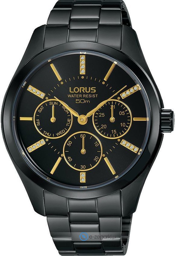 Damski zegarek Lorus RP697CX9 to zegarek, który dzięki swemu wzornictwu zawsze będzie prezentował się dobrze. Atrakcyjny wygląd czasomierza uzyskano m.in. poprzez cyferblat w kolorze czarnym. Godzina pokazywana jest w sposób analogowy co niezmiernie łatwo pozwala ją odczytać. Koperta w barwach koloru czarnego szeroka jest na 38 mm oraz ma grubość 10 mm - cechuje się okrągłym kształtem.