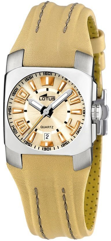 Model L15408-4 marki Lotus to elegancki zegarek naręczny damski, który jest wyposażony w pomysłowe rozwiązania oraz funkcje. Tarcza zegarka w kolorze żółtym. Godzina zaprezentowana jest w sposób analogowy co niezmiernie łatwo pozwala ją odczytać.