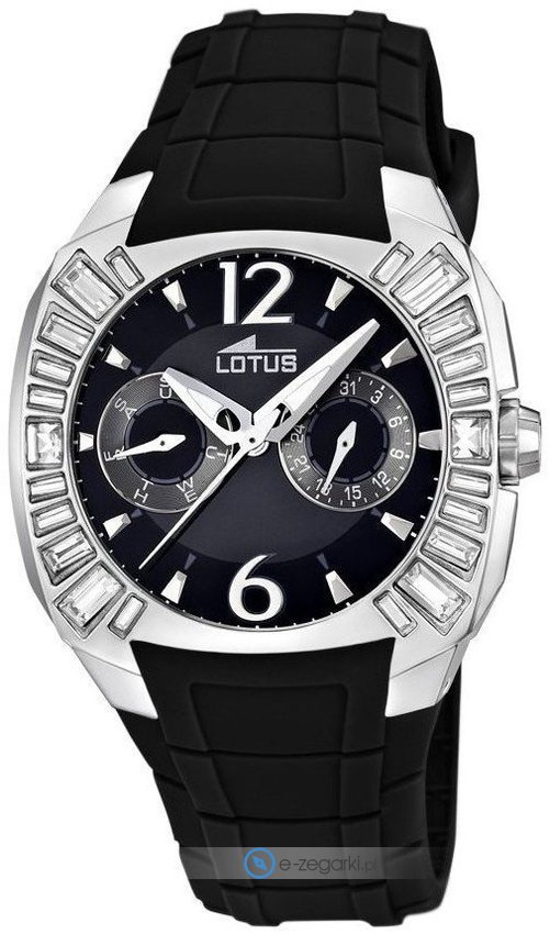Lotus to zegarki produkowane w Hiszpani już ponad 30 lat. W tym czasie marka zakorzeniła się na dobre na rynku sprzedaży zegarków w Europie. Zegarki tej marki przeznaczone są w większości dla młodych osób, szukających niepowtrzalnego designu przy zachowaniu wysokiej jakości. Przy produkcji czasomierzy Lotus wykorzystywane są jedynie wysokogatunkowe materiały, tak by mieć pewność ich długotrwej przydatności. Stosowane w nich mechanizmy pochodzą z cenionej japońskiej fabryki. Śmiało więc można napisać, że zegarki te łączą w sobie hiszpański temperament i japońską precyzję. Zegarki Lotus z pewnością wyróżniają się nowoczesnym podejściem do kolorów, indywidualnym wyglądem. Można pośród nich znaleźć czasomierze poświęcone sportom lotniczym oraz wodnym. Nabywając w naszym sklepie zegarek Lotus masz gwarancję, że zegarek jest całkowicie nowy, pochodzi z autoryzowanej sprzedaży i producent udziela na niego 2 letniej gwarancji.