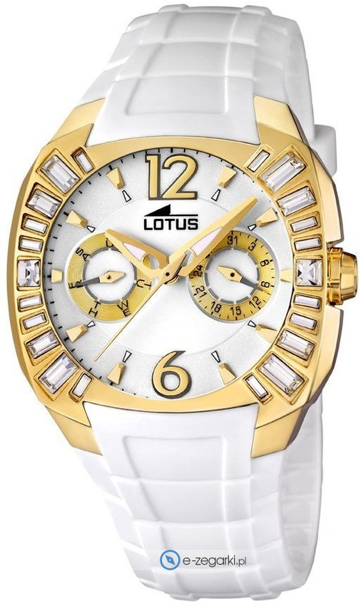 Model L15763-1 marki Lotus to elegancki zegarek naręczny damski, który jest wyposażony w pomysłowe rozwiązania i funkcje. Charakterystyczny wygląd czasomierza uzyskano również dzięki tarczy w kolorze białym. Aktualna godzina prezentowana jest w sposób analogowy co intuicyjnie pozwala ją odczytać.