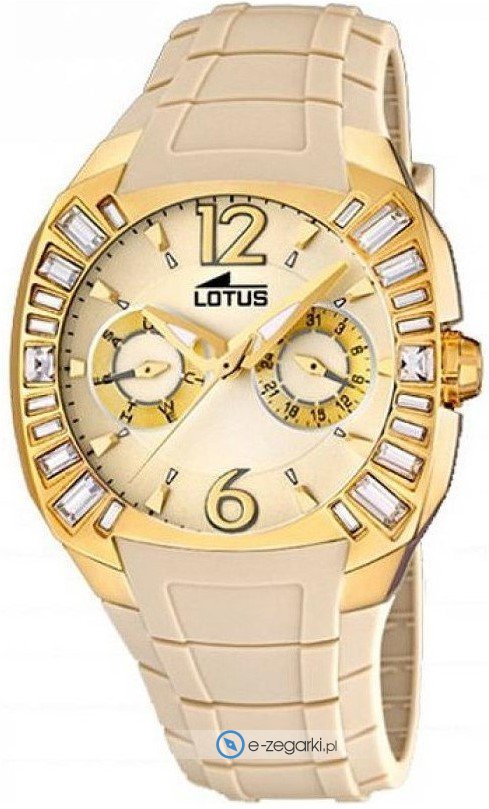 Hiszpańskie Zegarki Lotus czyli zegarki produkowane są od przeszło trzydziestu lat. W tym czasie brand zakorzenił się na stałe na rynku sprzedaży zegarków w całej Europie. Zegarki tej marki skierowane są przeważnie dla młodych osób, szukających niepowtrzalnego designu przy zachowaniu najwyższej jakości. Przy produkcji zegarków Lotus wykorzystywane są tylko wysokogatunkowe materiały, tak by mieć absolutną pewność ich długotrwej przydatności. Stosowane w nich mechanizmy są produkcji japońskiej. Bez problemów więc można napisać, że zegarki te to połączenie japońskiej precyzji oraz hiszpańskiego temperamentu. Zegarki Lotus z pewnością wyróżniają się nowoczesnym podejściem do kolorów, indywidualnym wyglądem. Można wśród nich zobaczyć czasomierze poświęcone sportom lotniczym lub wodnym. Kupując w naszym sklepie zegarek Lotus masz pewność, iż zegarek jest w 100% nowy, pochodzi z autoryzowanej sprzedaży i producent udziela na niego 2 letniej gwarancji.
