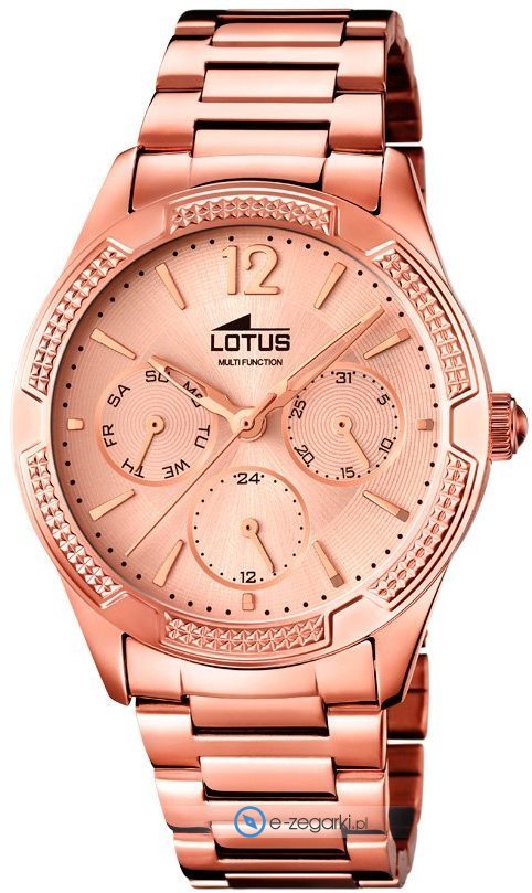 Zegarek damski L15924-1 marki Lotus to stylowe połączenie funkcjonalności oraz ciekawego designu. Atrakcyjną konstrukcję czasomierza osiągnięto dzięki tarczy w kolorze różowym. Zaprezentowana metodą analogową aktualna godzina jest czytelna i łatwa do odczytania.