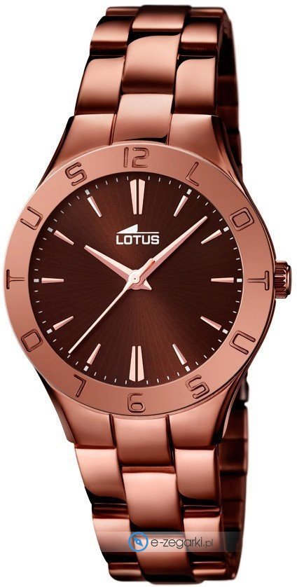 Model L15997-2 marki Lotus to gustowny zegarek naręczny damski, który wyposażono w ciekawe rozwiązania i funkcje. Ciekawą stylistykę zegarka uzyskano dzięki tarczy w kolorze brązowym. Aktualna godzina prezentowana jest w sposób analogowy co niezmiernie łatwo pozwala ją odczytać. Koperta szeroka jest na 32 mm - w kształcie okrągłym.
