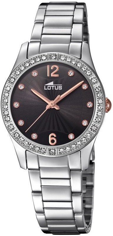 Model L18383-2 marki Lotus to stylowy zegarek naręczny damski, który jest wyposażony w pomysłowe rozwiązania i funkcje. Nieschematyczny wygląd zegarka osiągnięto m.in. poprzez cyferblat w kolorze czarnym. Zaprezentowana metodą analogową aktualna godzina jest czytelna i prosta do odczytania. Koperta szeroka jest na 31 mm - posiada okrągły kształt.
