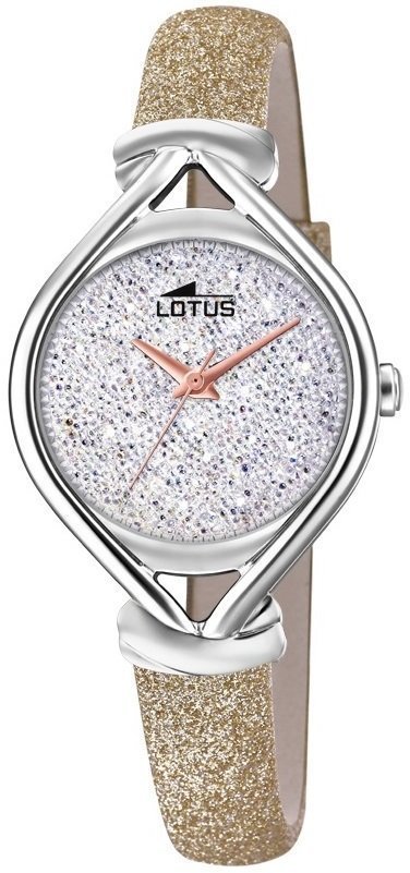 Zegarek damski L18601-2 marki Lotus to dobra pozycja dla osób ceniących sobie dbałość o szczegóły jak również sprawne zachowanie mechanizmów. Charakter zapewnia wysokiej klasy tarcza w kolorze srebrnym. Godzina zaprezentowana jest w sposób analogowy co bez trudu pozwala ją odczytać. Koperta szeroka jest na 29 mm - w kształcie okrągłym.