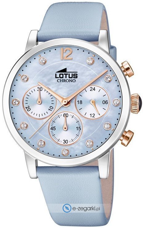 Damski zegarek Lotus L18674-3 to zegarek, który dzięki swemu wzornictwu zawsze będzie prezentował się dobrze. Ciekawy wygląd czasomierza uzyskano także dzięki tarczy w kolorze perłowym. Zegarek ten prezentuje aktualny czas w formacie analogowym dzięki czemu odczyt jest bezproblemowy. Koperta w barwach koloru srebrnego szeroka jest na 37 mm - w kształcie okrągłym.