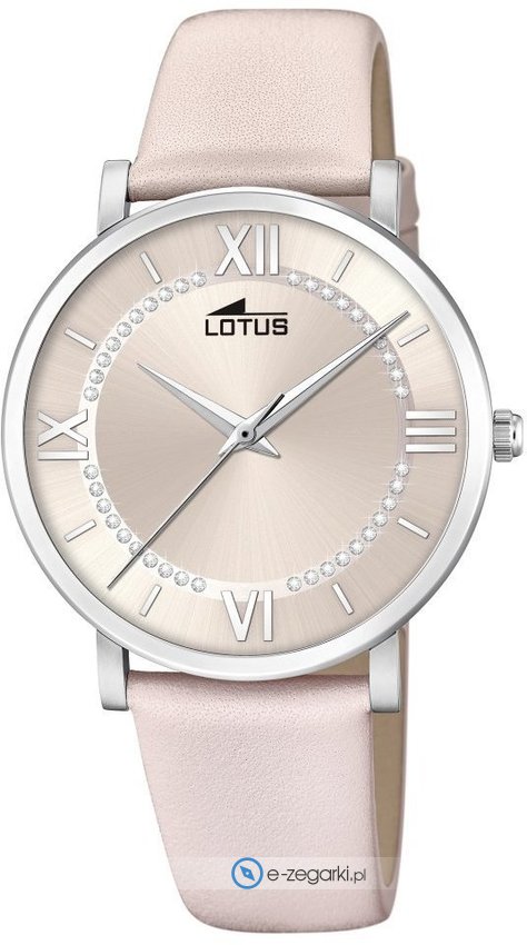 Model L18701-6 marki Lotus to stylowy zegarek naręczny damski, który posiada pomysłowe rozwiązania i funkcje. Ciekawą stylistykę zegarka osiągnięto z pomocą tarczy w kolorze różowym. Zegarek ten prezentuje godzinę w formacie analogowym dzięki czemu odczyt jest bardzo łatwy. Koperta szeroka jest na 38 mm - w kształcie okrągłym.