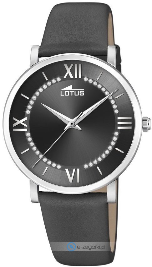 Damski zegarek Lotus L18701-8 to zegarek, który dzięki swemu wzornictwu zawsze będzie prezentował się dobrze. Cyferblat zegarka jest w kolorze czarnym. Zegarek ten pokazuje godzinę w formacie analogowym dzięki temu odczyt jest bezproblemowy. Koperta szeroka jest na 38 mm - cechuje się okrągłym kształtem.