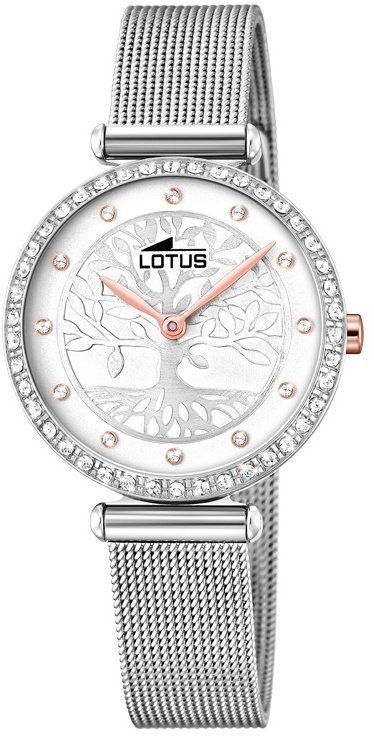 Model L18709-1 marki Lotus to elegancki zegarek naręczny damski, który posiada pomysłowe rozwiązania oraz funkcje. Styl zapewnia wysokiej jakości cyferblat w kolorze srebrnym. Aktualna godzina prezentowana jest w sposób analogowy co intuicyjnie pozwala ją odczytać. Koperta została ozdobiona kolorem srebrnym szeroka jest na 29 mm - w kształcie okrągłym.
