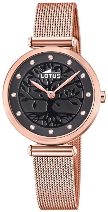 Zegarek damski L18710-3 marki Lotus to stylowe połączenie funkcjonalności i ciekawego wzornictwa. Atrakcyjną konstrukcję czasomierza uzyskano dzięki tarczy w kolorze czarnym. Aktualna godzina zaprezentowana jest w sposób analogowy co niezmiernie łatwo pozwala ją odczytać. Koperta szeroka jest na 29 mm - w kształcie okrągłym.