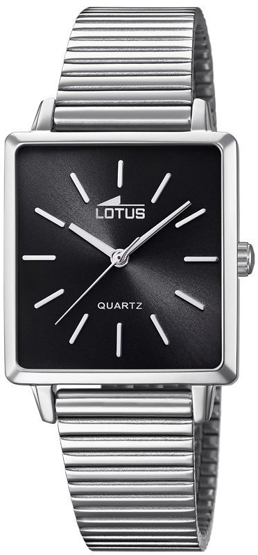 Model L18715-4 marki Lotus to gustowny zegarek naręczny damski, który posiada ciekawe rozwiązania i funkcje. Niebanalną budowę zegarka uzyskano dzięki tarczy w kolorze czarnym. Godzina zaprezentowana jest w sposób analogowy co niezmiernie łatwo pozwala ją odczytać. Koperta została ozdobiona kolorem srebrnym szeroka jest na 29 mm.