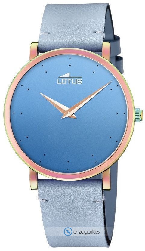 Model L18778-3 marki Lotus to gustowny zegarek naręczny damski, który wyposażono w pomysłowe rozwiązania i funkcje. Ciekawy wygląd zegarka uzyskano również dzięki tarczy w kolorze niebieskim. Godzina pokazywana jest w sposób analogowy co bez trudu pozwala ją odczytać. Koperta szeroka jest na 38 mm - ma okrągły kształt.