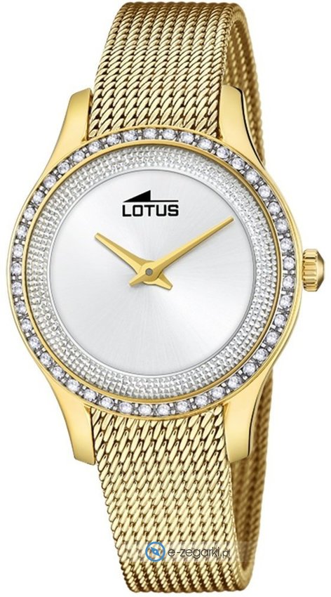 Zegarek damski L18827-1 marki Lotus to ciekawa pozycja dla osób ceniących sobie dbałość o detale a także bezawaryjne funkcjonowanie mechanizmów. Cyferblat zegarka jest w kolorze srebrnym. Zegarek ten pokazuje godzinę w formacie analogowym dzięki czemu odczyt jest bardzo łatwy. Koperta szeroka jest na 31 mm - ma okrągły kształt.