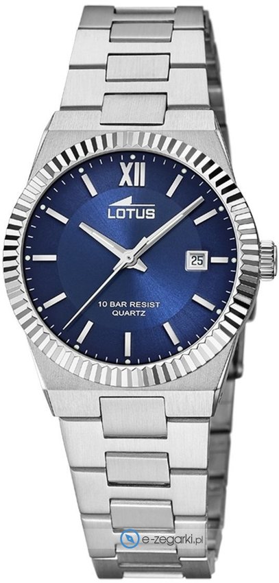 Model L18838-3 marki Lotus to gustowny zegarek naręczny damski, który posiada ciekawe rozwiązania i funkcje. Stylu nadaje wysokiej jakości cyferblat w kolorze niebieskim. Aktualna godzina zaprezentowana jest w sposób analogowy co intuicyjnie pozwala ją odczytać. Koperta szeroka jest na 31 mm - wyróżnia się okrągłym kształtem.