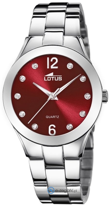 Zegarek damski L18884-6 marki Lotus to idealna pozycja dla ludzi ceniących sobie dbałość o szczegóły oraz bezproblemowe zachowanie mechanizmów. Wysokiej jakości tarczę zegarka pokryto czerwonym kolorem. Zaprezentowana metodą analogową bieżąca godzina jest czytelna i szybka do odczytania. Koperta szeroka jest na 33 mm - charakteryzuje się okrągłym kształtem.