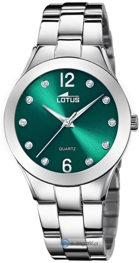 Damski zegarek Lotus L18884-7 to zegarek, który dzięki swemu wzornictwu zawsze będzie prezentował się dobrze. Stylu nadaje wysokiej jakości cyferblat w kolorze zielonym. Zegarek ten pokazuje godzinę w formacie analogowym dzięki temu odczyt jest bezproblemowy. Koperta szeroka jest na 33 mm - w kształcie okrągłym.