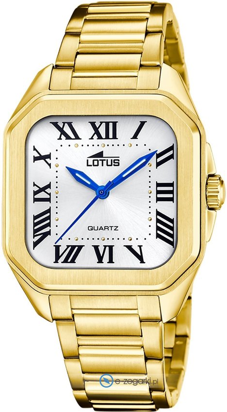 Damski zegarek Lotus L18970-1 to zegarek, który dzięki swemu wzornictwu zawsze będzie prezentował się dobrze. Zegarek ten prezentuje godzinę w formacie analogowym dzięki czemu odczyt jest intuicyjny. Koperta została pokryta kolorem złotym - posiada prostokątny kształt.