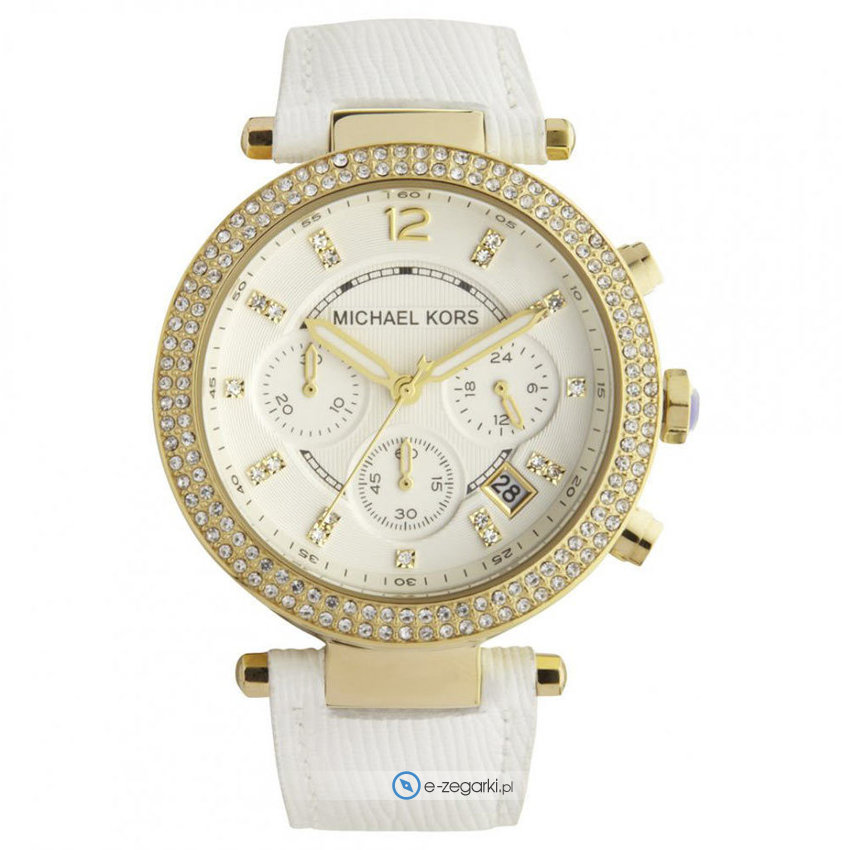 Zegarek MK2290 wyposażony jest w mechanizm zasilany standardową baterią kwarcową. Pasek koloru białego wykonany jest z wysokiej jakości skóry zapewniającej trwałość i komfort noszenia.